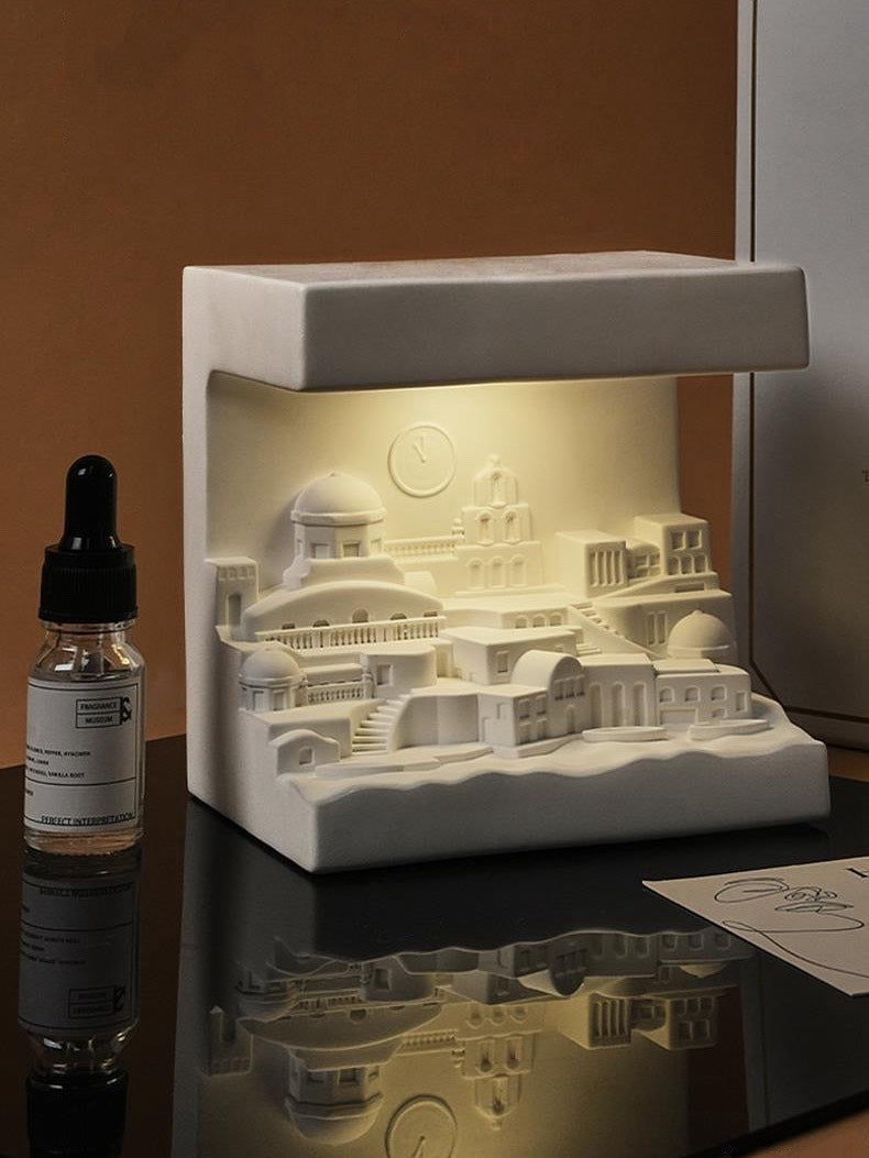 希臘島嶼靈感|石膏擴香小礦標展示台 × 雙色小夜燈