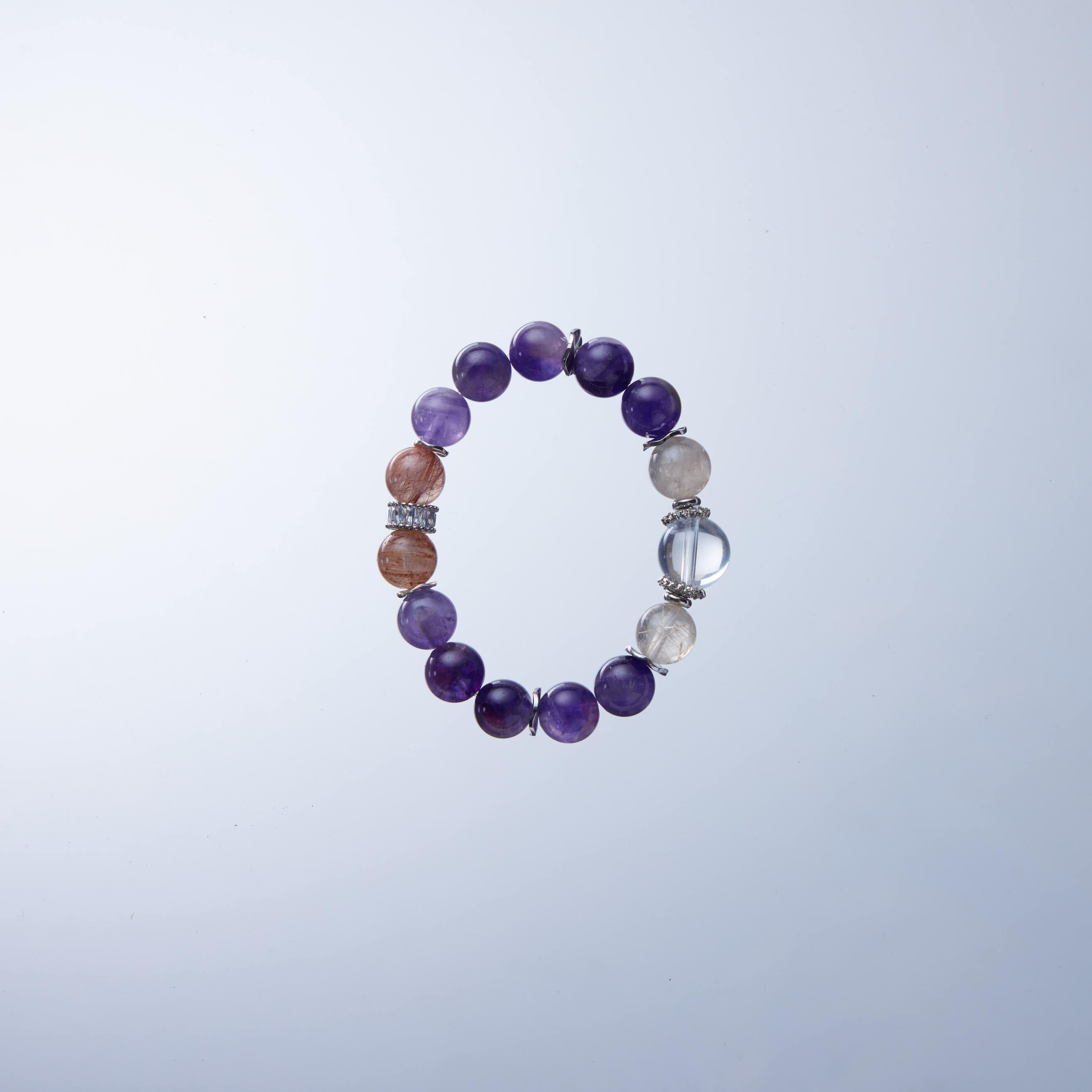 紫水晶設計款手鏈|白水晶 × 白髮晶 × 紅髮晶|護心、聚財、招貴人