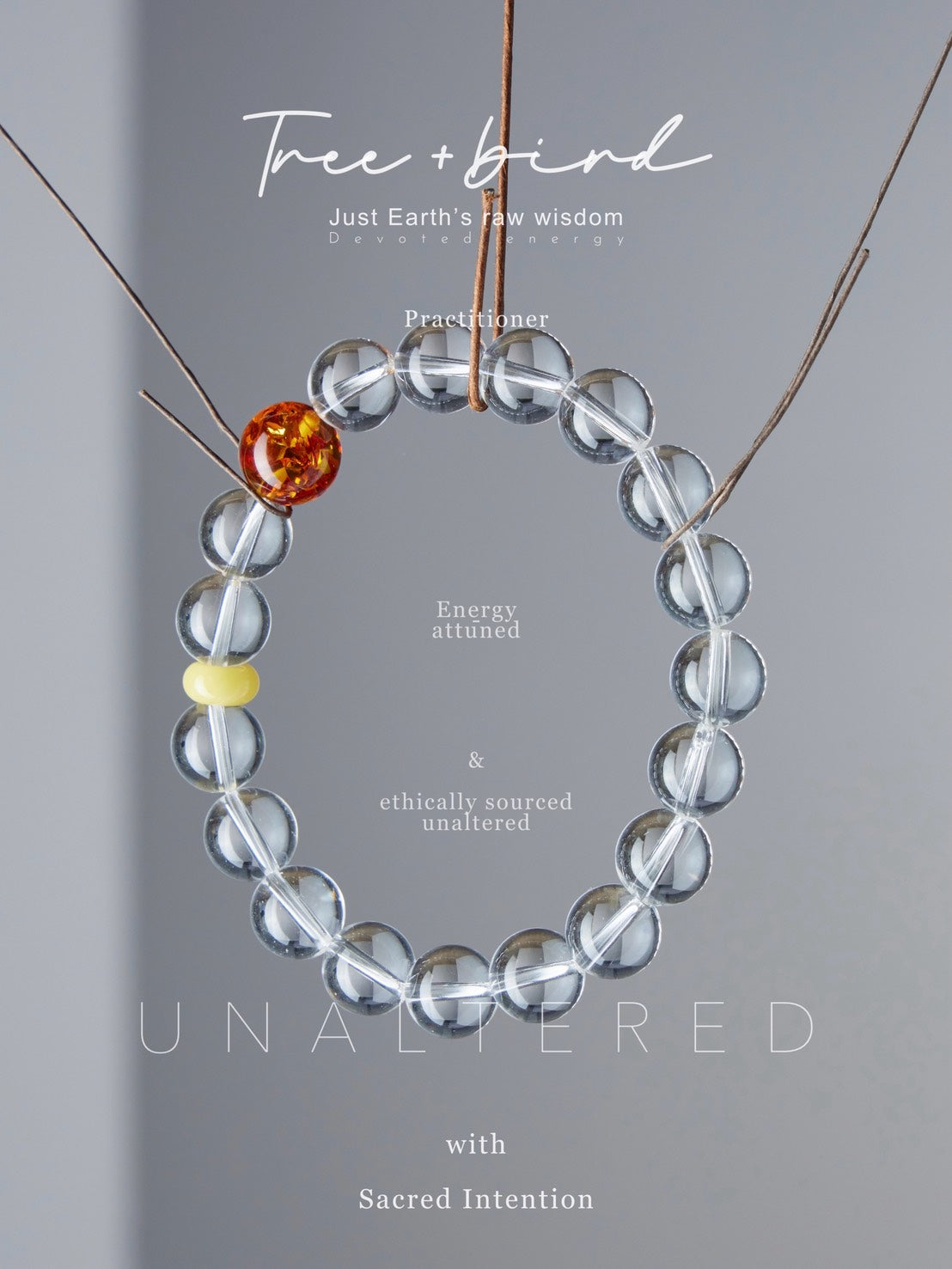 琥珀蜜蠟 × 天然白水晶手串|10mm|療癒・淨化