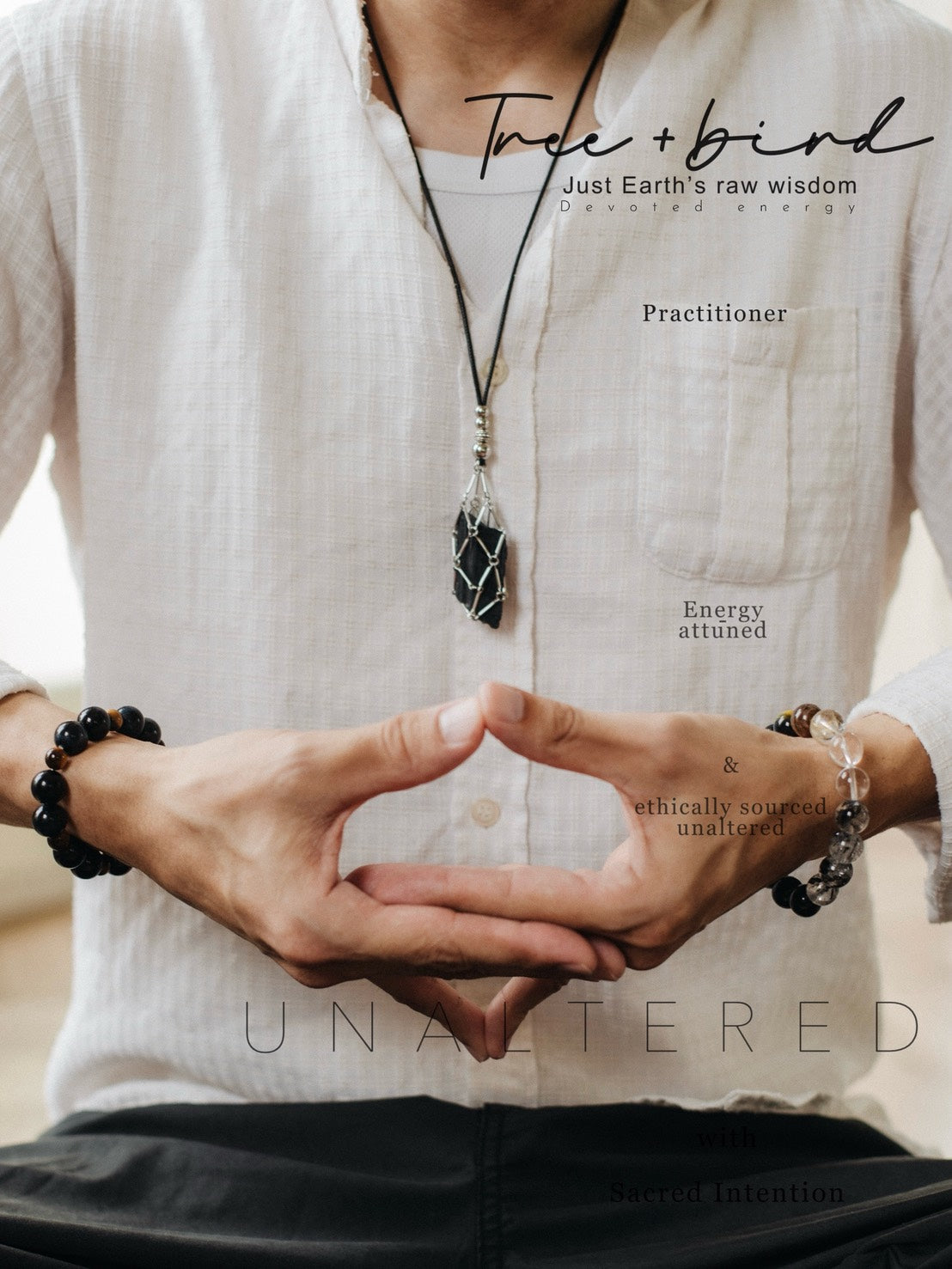 純鋼水晶原石網袋項鍊|可自由更換原石