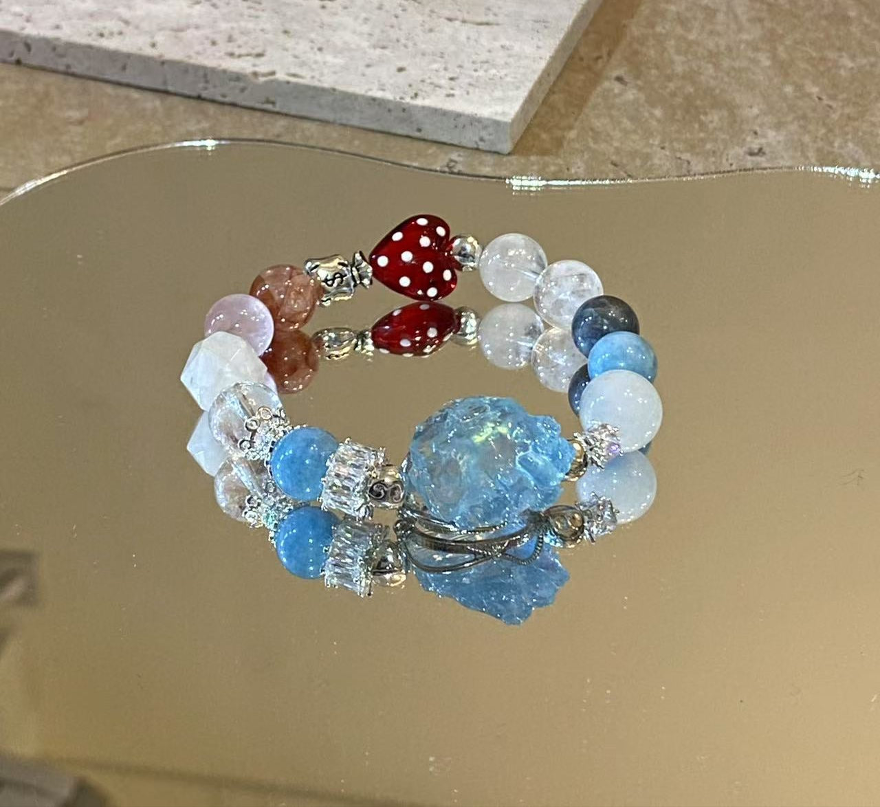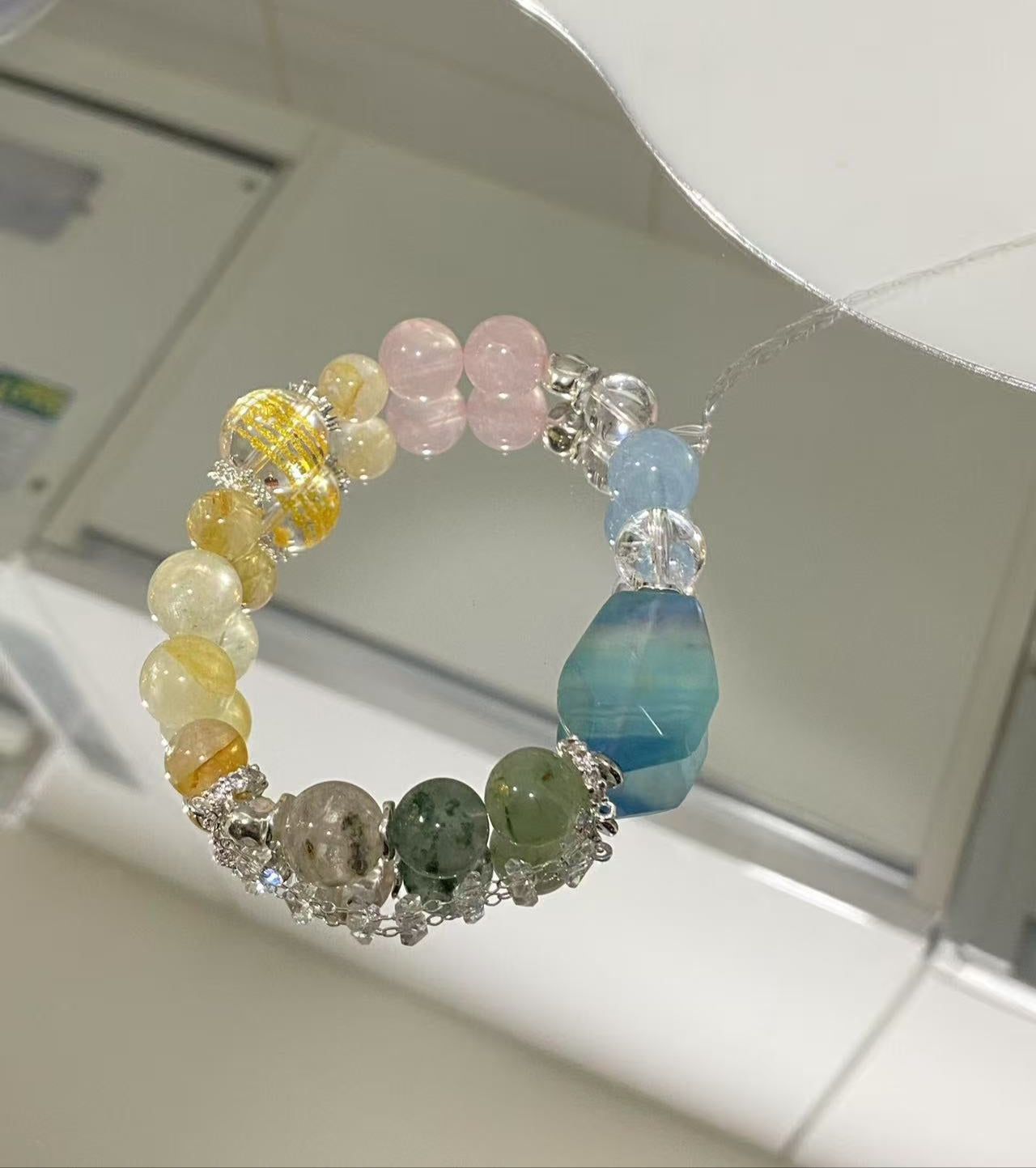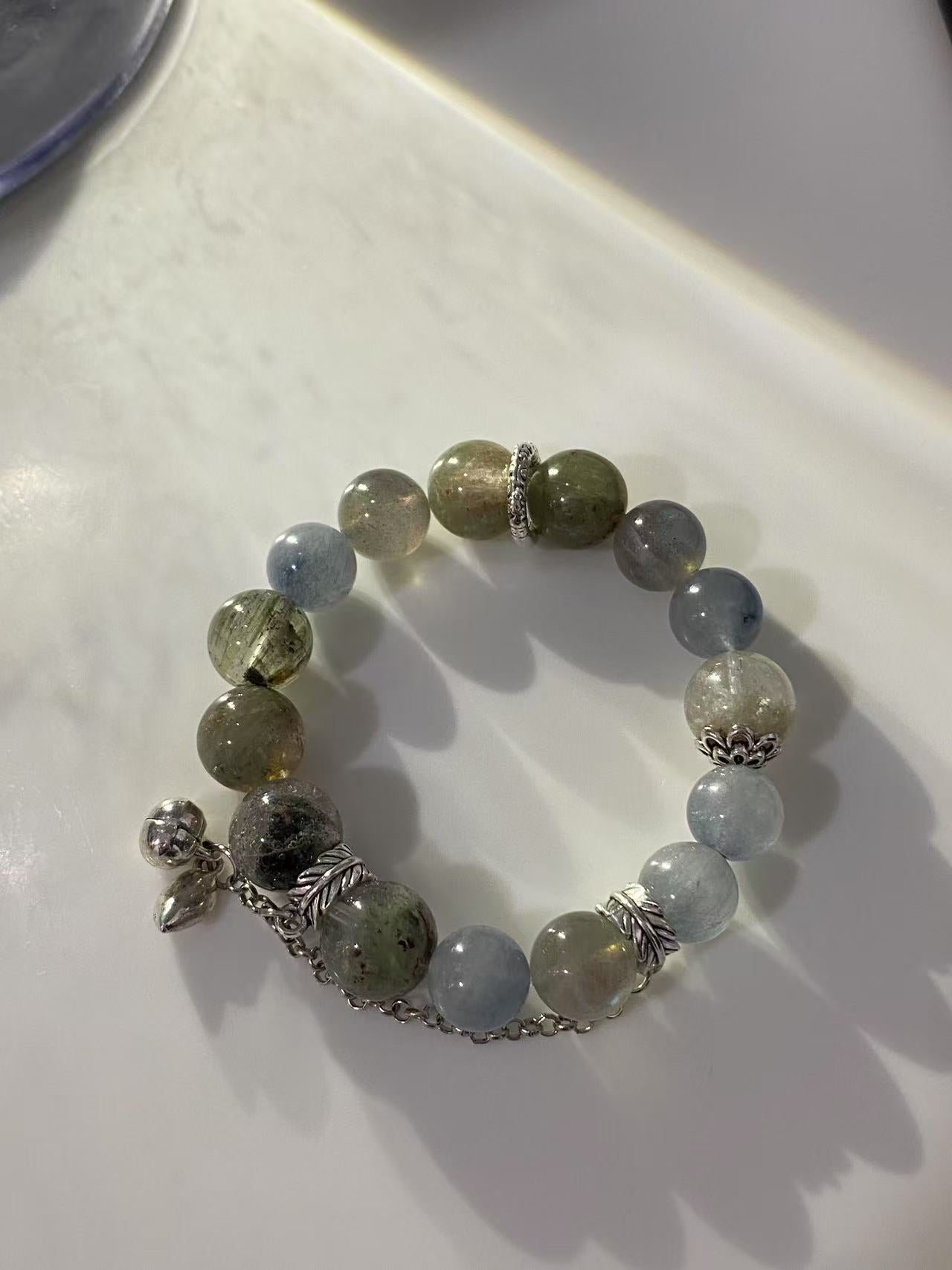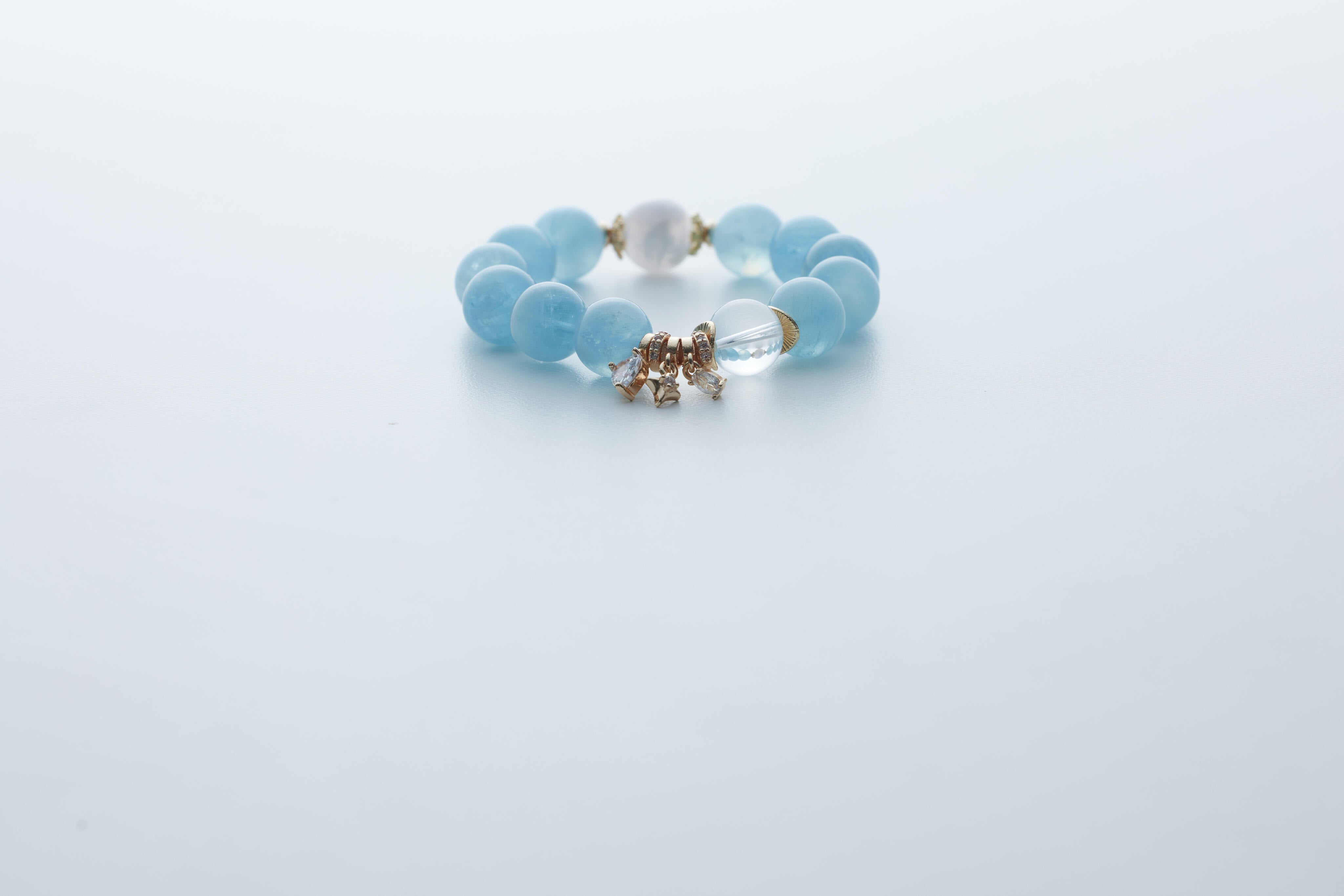 【天然海藍寶水晶手鏈|海藍寶、白水晶、珍珠 |情緒療癒 × 溝通能量|脈輪:喉輪