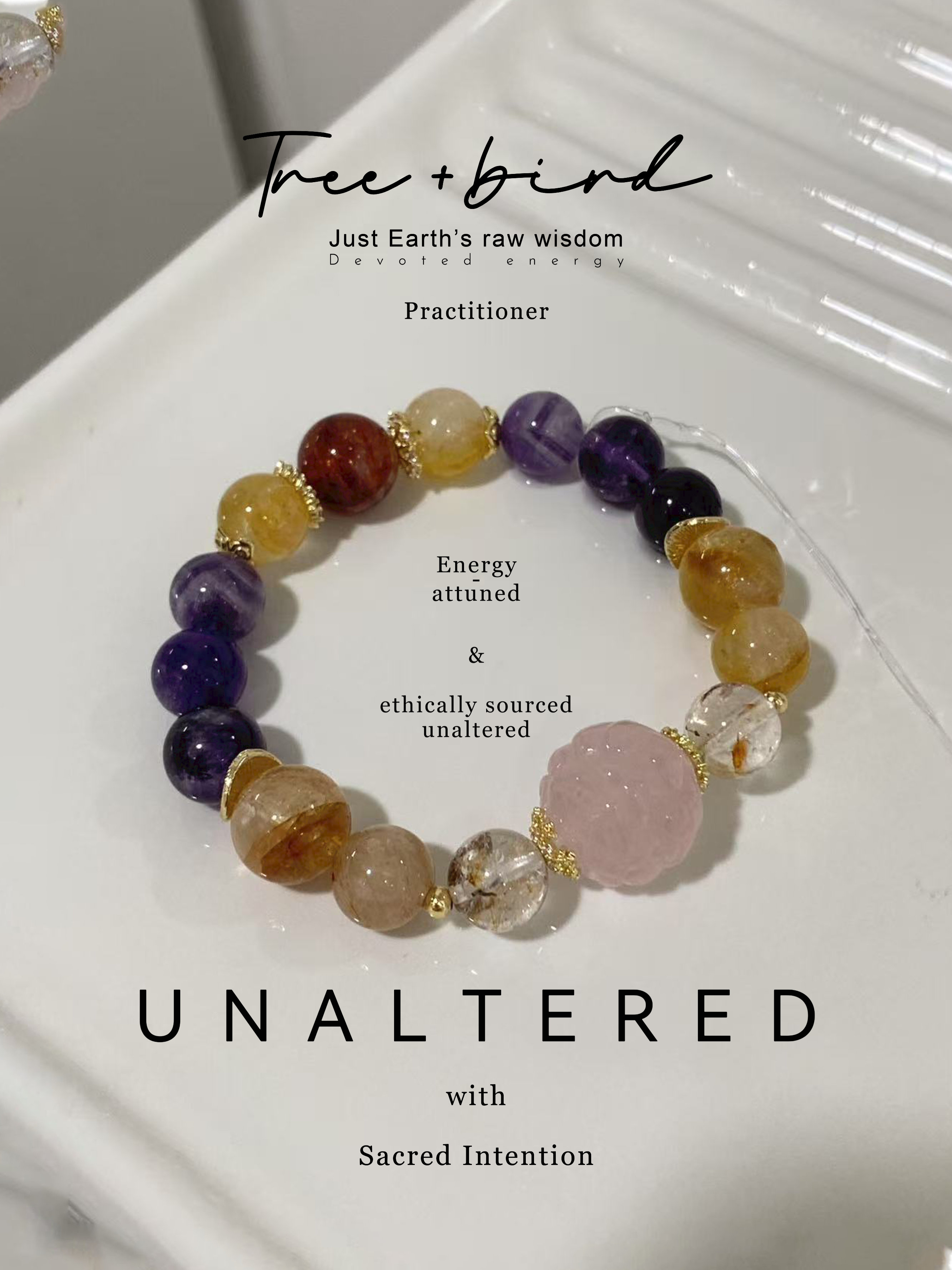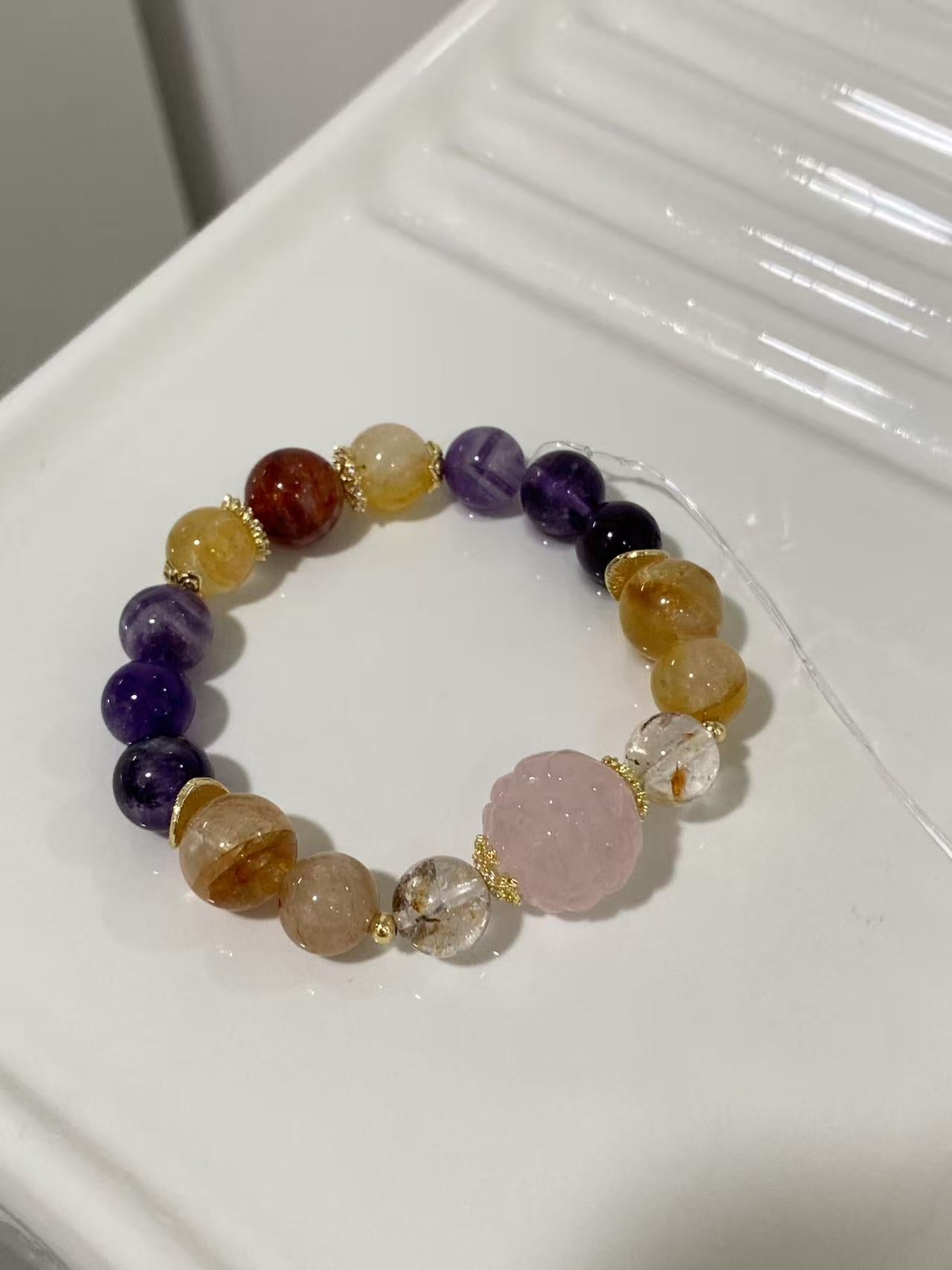 九尾狐能量設計款|粉水晶 × 紫水晶 × 紅膠花 × 黃膠花|天然水晶手鏈/手串