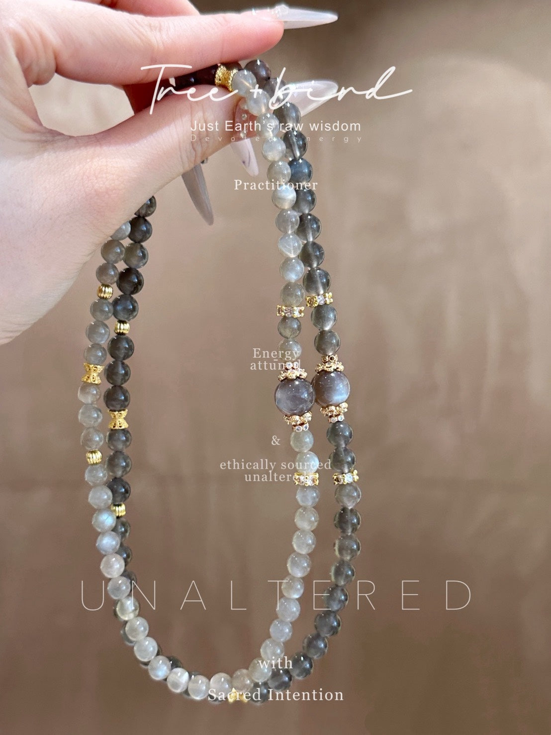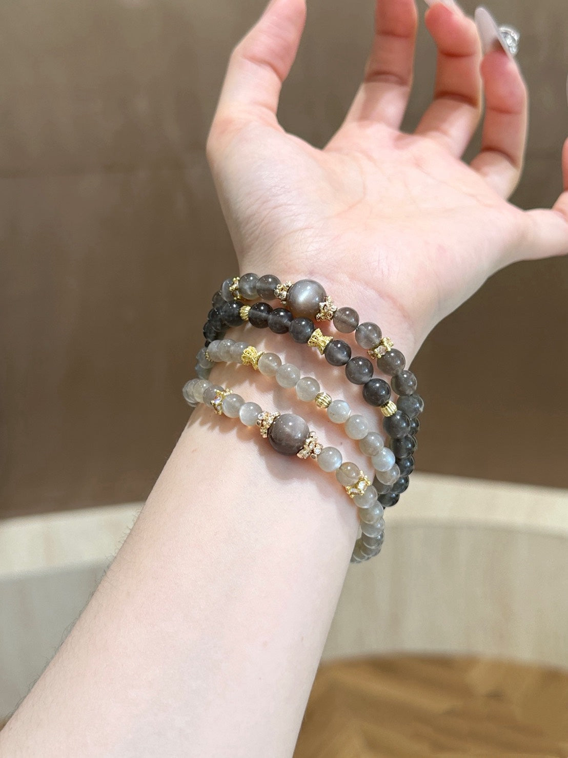 天然灰月光雙圈手鍊|5mm淺灰×深灰|「好好睡」靜心安眠系列
