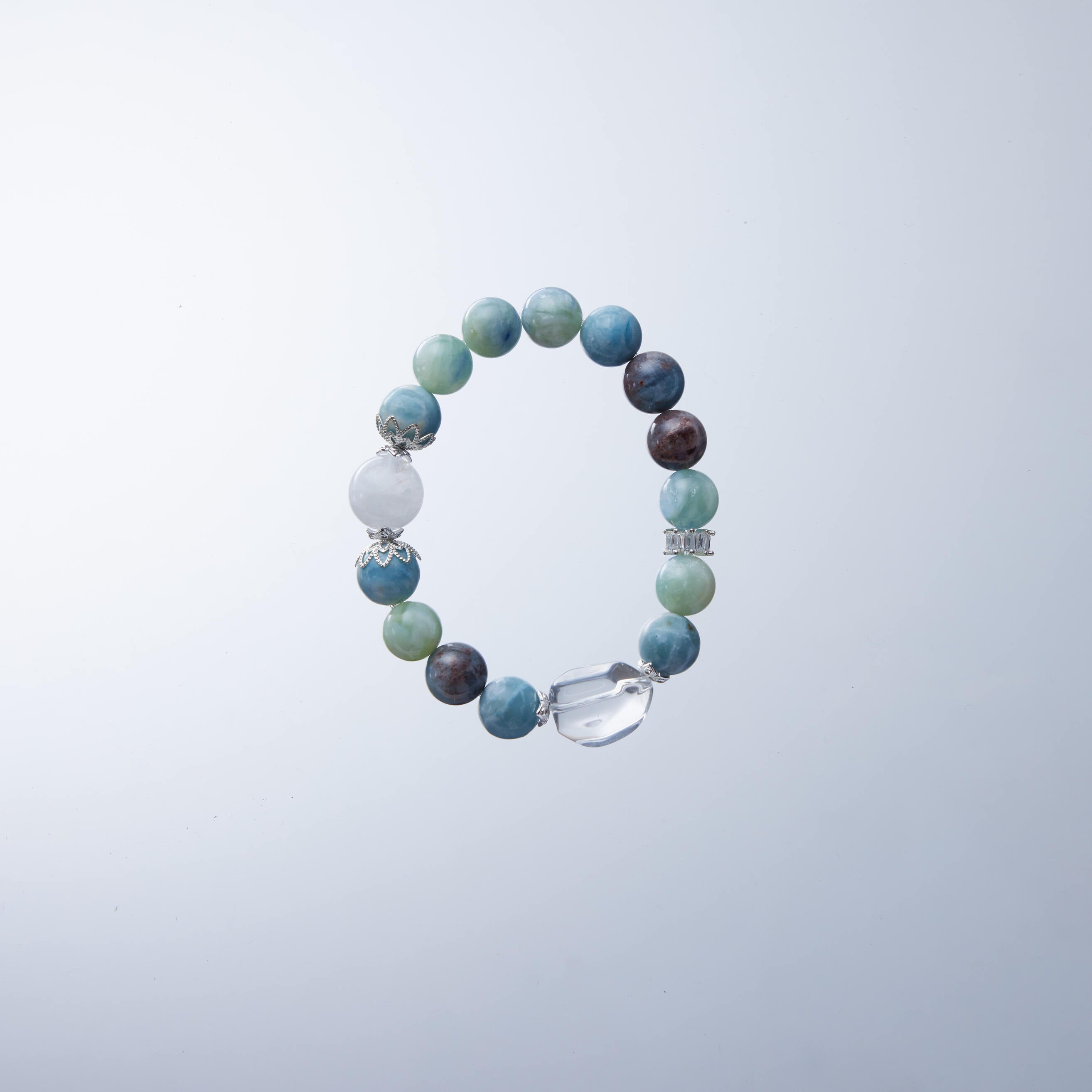 海藍寶 × 珍珠 × 透體白水晶|療癒系手鏈10mm|溫柔療癒・穩心淨化